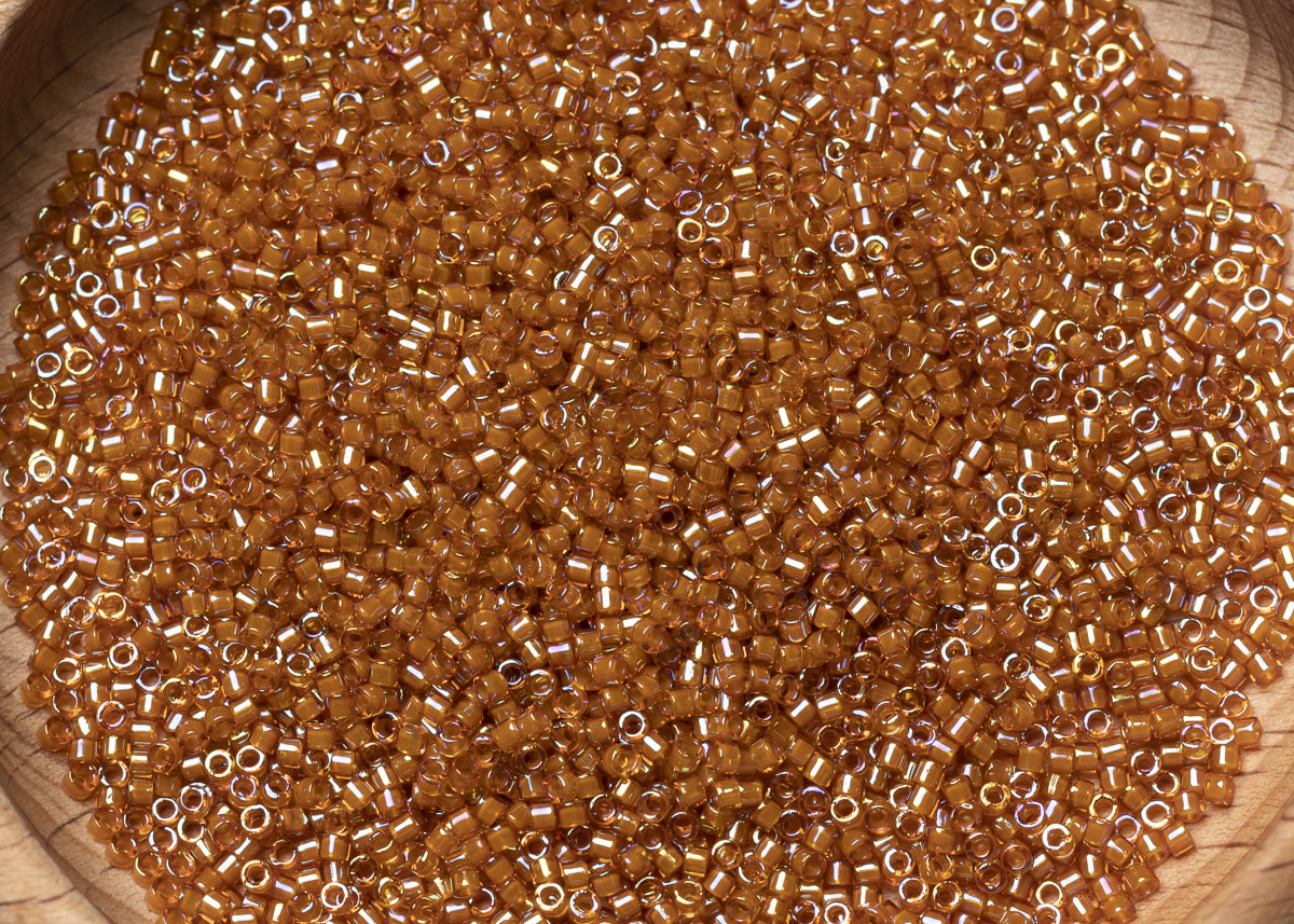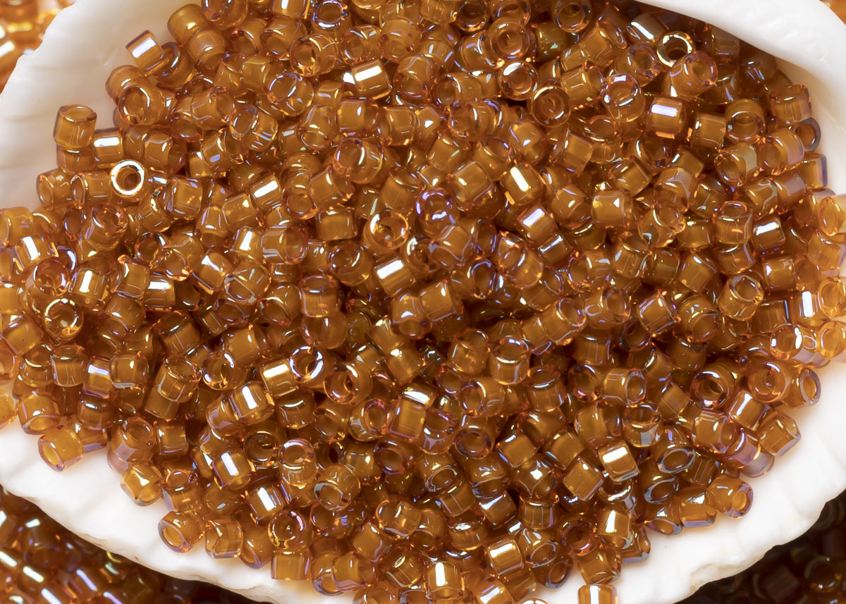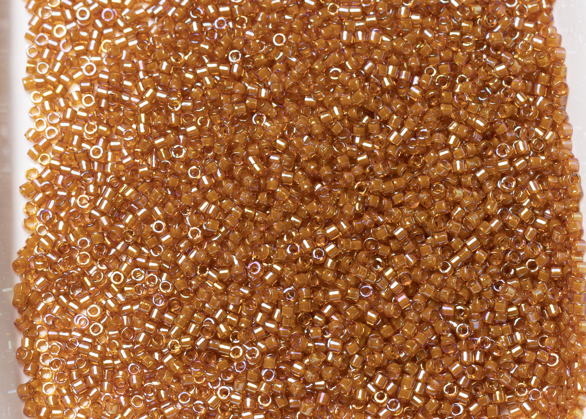 Бисер Япония MIYUKI Delica цилиндрический 11/0 5г DB-1734 бежевый топаз радужный с цветной линией