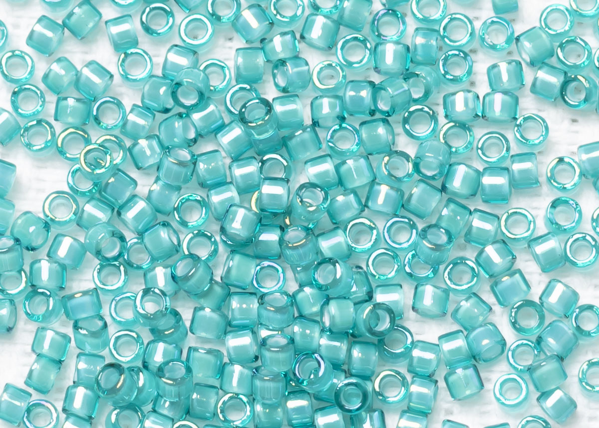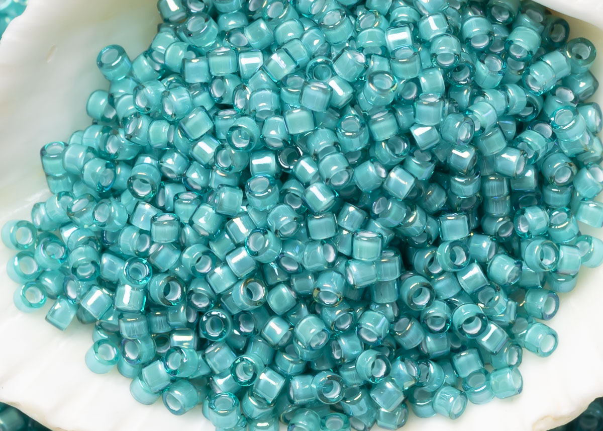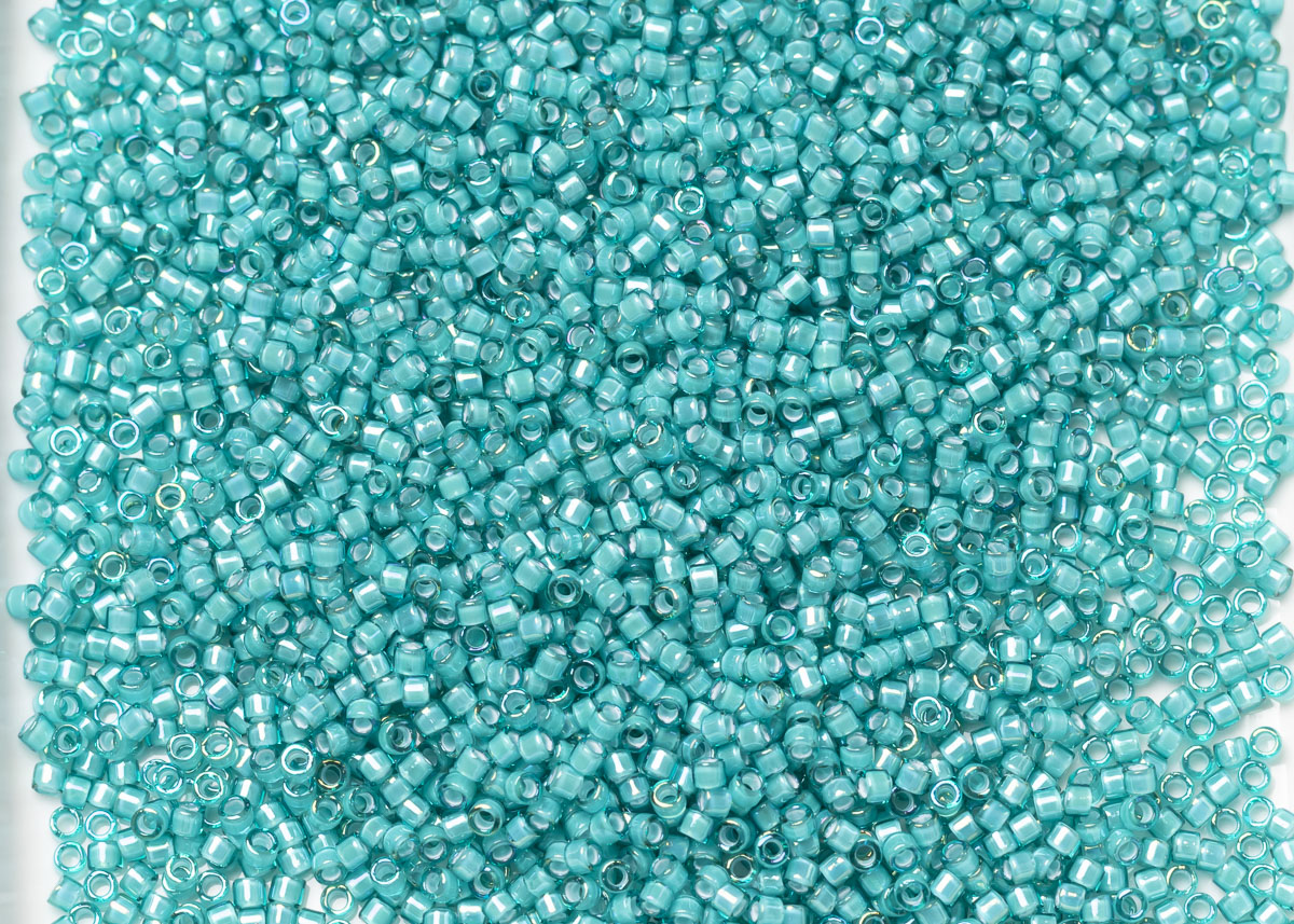 Бисер Япония MIYUKI Delica цилиндрический 11/0 5г DB-1782 белый бирюзовый радужный с цветной линией