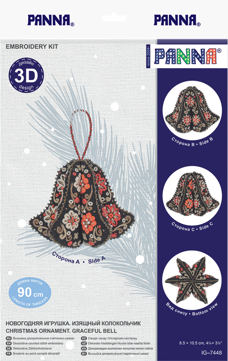 В набор для вышивания PANNA входит: канва Gamma Linda K27, хлопчатобумажные нитки мулине Gamma на держателе, чешский бисер Gamma, игла для вышивания Gamma, синтепон для набивки шара, цветная схема, инструкция по вышиванию и сшиванию игрушки. Особенность набора - 3D- дизайн. Вышивка декоративными счетными швами подойдет тем, кто ищет разнообразия и новизны в вышивке. Сообщить о неточности в описании