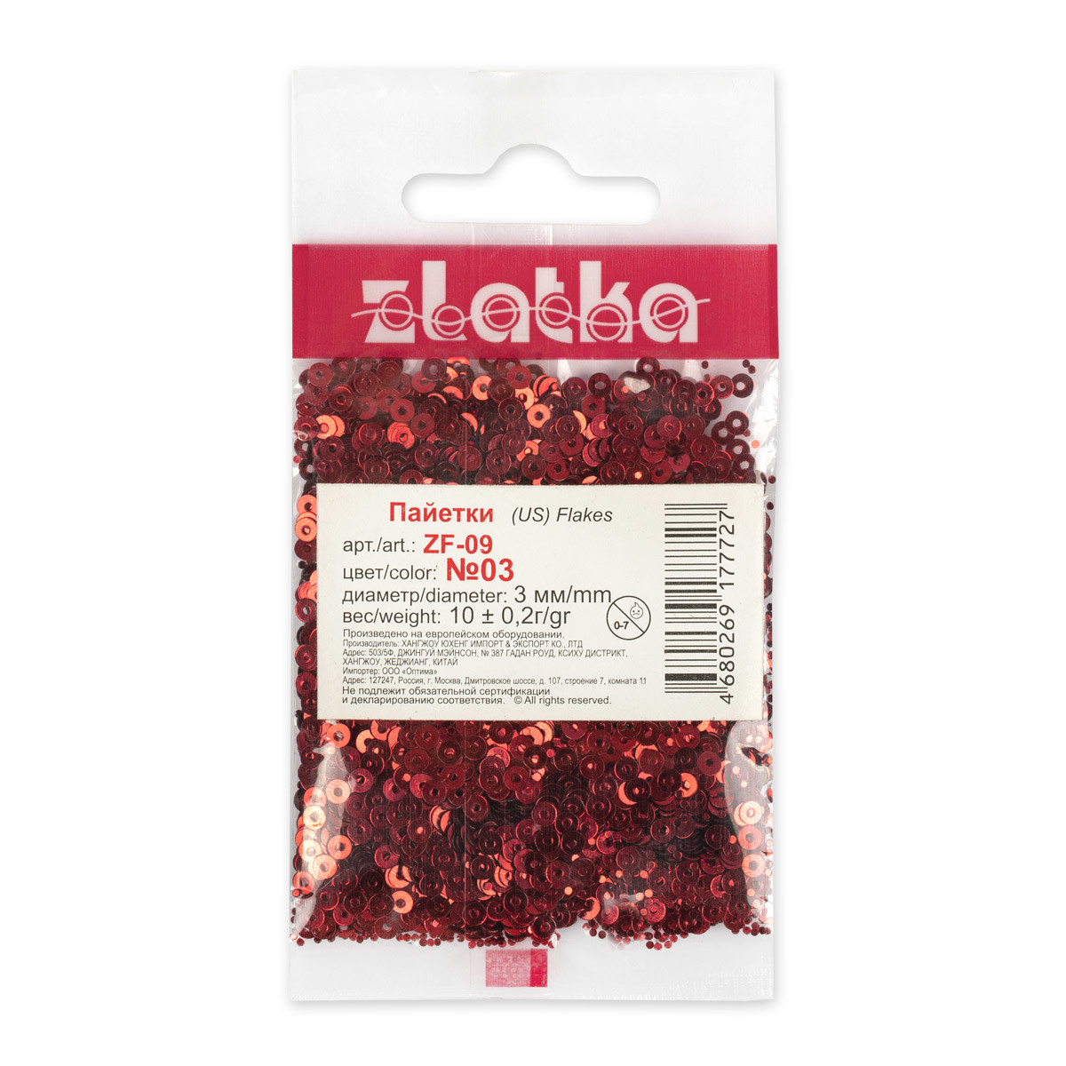 Пайетки " Zlatka" россыпью ZF- 09 3 мм 10 г №09 золото